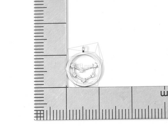 PDT-1377-MR/2PCS/Capricorn Pendant/10mm X 10mm/Matte Rhodium Plated Over Brass , Cubic Zirconia