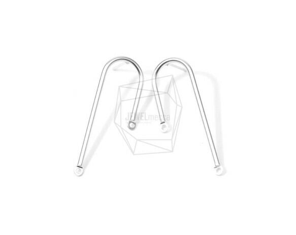 ERG-646-MR/4PCS/U Shape Post Earring/15mm X 35mm/Matte Rhodium Plated Over Brass
