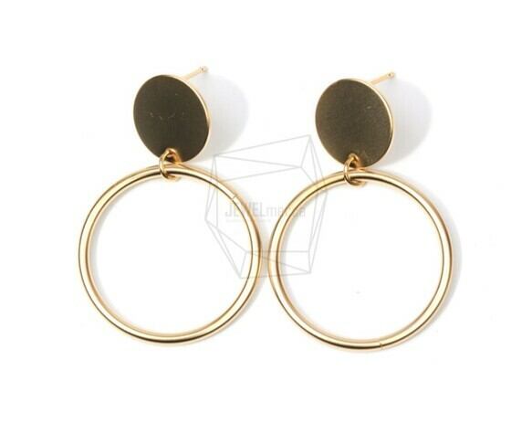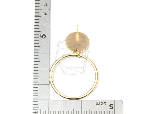 ERG-653-MG/2PCS/Two Circles Post Earring/30mm X 45mm/Matte Gold Plated Over Brass
