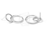 ERG-658-MR/2PCS/Two Linked rings Earring/20mm X 30mm/Matte Rhodium Plated Over Brass