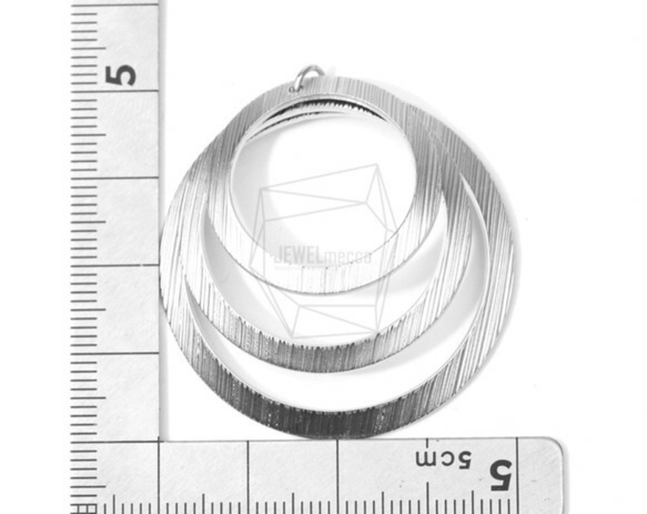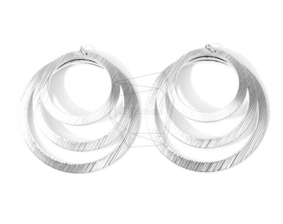 PDT-1421-MR/2PCS/Triple Circles Brushed Texture Pendant/40mm X 40mm/Matte Rhodium Plated Over Brass