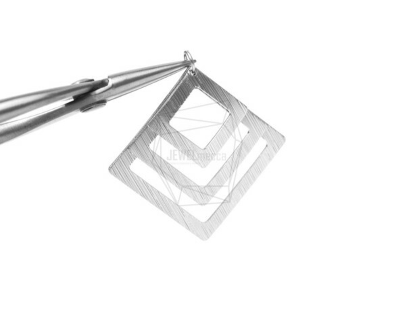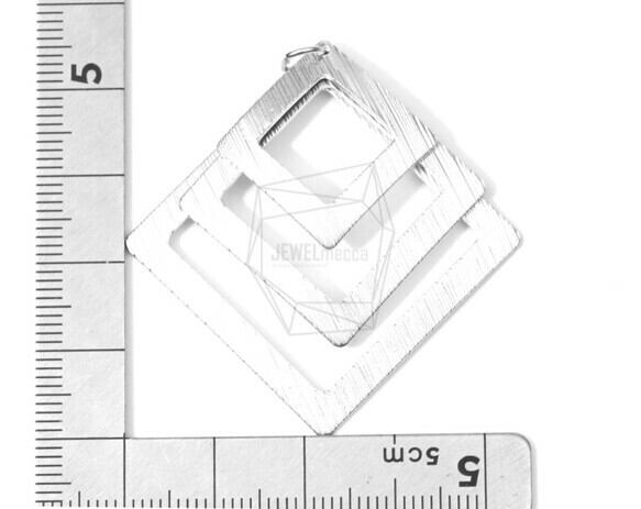 PDT-1422-MR/2PCS/Triple Squares Brushed Texture Pendant/50mm X 45mm/Matte Rhodium Plated Over Brass