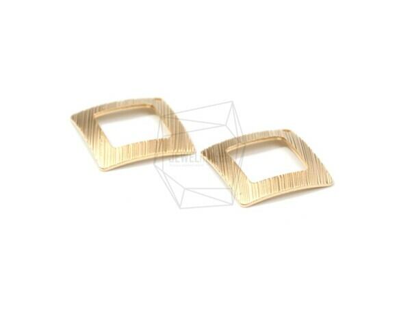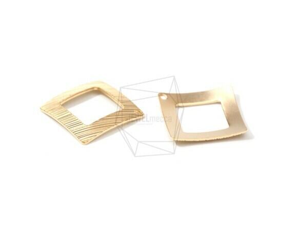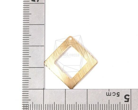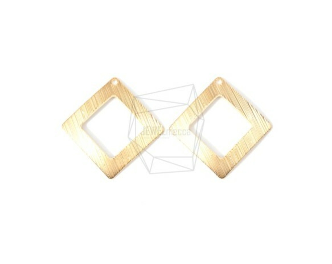 PDT-1426-MG/2PCS/Rhombus Brushed Texture pendant/25mm X 25mm/Matte Gold Plated Over Brass