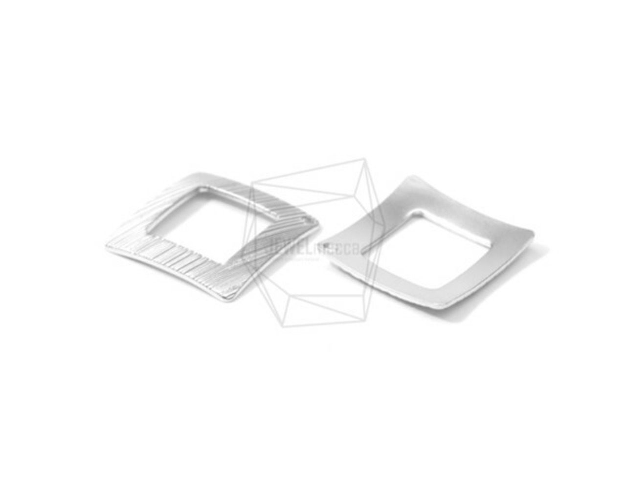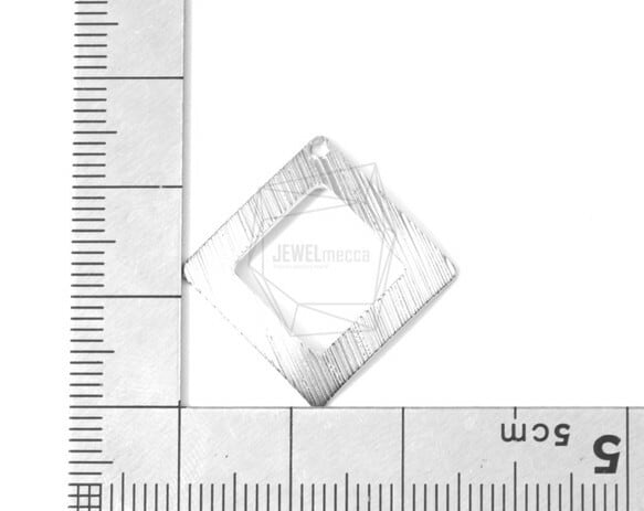 PDT-1426-MR/2PCS/Rhombus Brushed Texture pendant/25mm X 25mm/Matte Rhodium Plated Over Brass