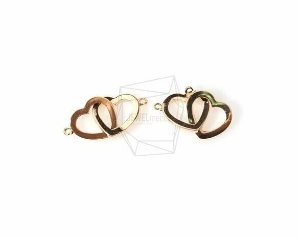 CNT-090-G/2pcs/2 Hearts Connected Charm/11mm x 16mm/Gold Platd Over Brass