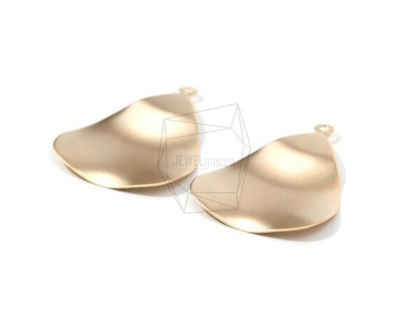 PDT-1338-MG/2PCS/Wavy Tear Drop Brushed Texture Pendant/30mm X 40mm/Matte Gold Plated Over Iron