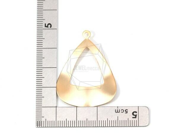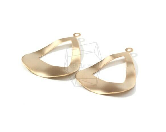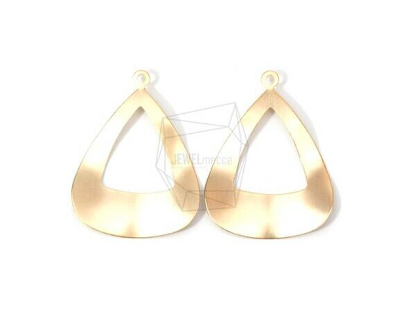 PDT-1339-MG/2PCS/Wavy Tear Drop Frame Brushed Texture Pendant/30mm X 40mm/Matte Gold Plated Over Iron