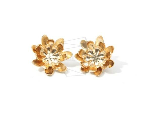 ERG-644-MG/2PCS/Flower Earring/20mm X 20mm/Matte Gold Plated Over Brass , 925 Silver Post , Cubic Zirconia