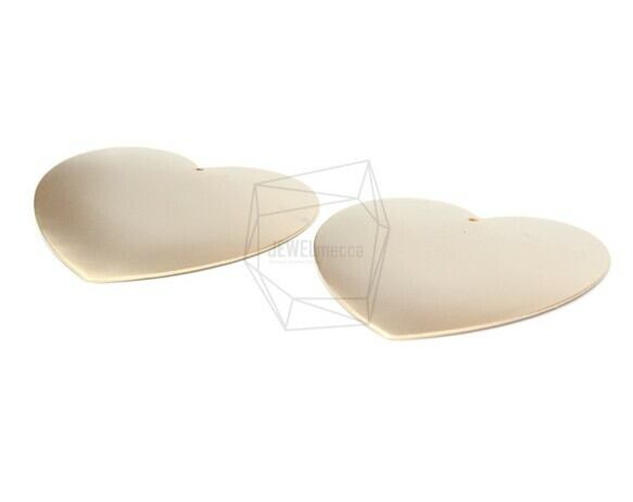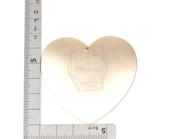 PDT-1393-MG/2PCS/Flat Heart Brushed Texture Pendant/65mm X 55mm/Matte Gold Plated Over Iron