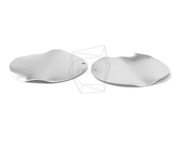 PDT-1395-MR/2PCS/Oval Brushed Texture Pendant/30mm X 40mm/Matte Rhodium Plated Over Iron
