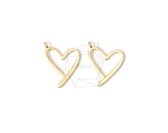 PDT-1398-MG/2PCS/Small Heart Pendant/10mm X 15mm/Matte Gold Plated Over Brass