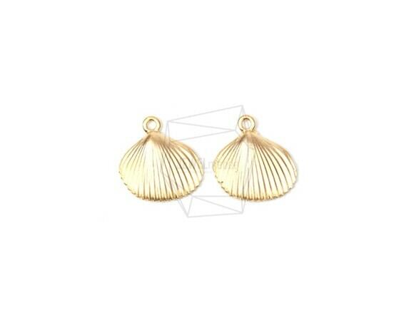PDT-1399-MG/2PCS/Sea Shell Pendant/10mm X 10mm/Matte Gold Plated Over Brass