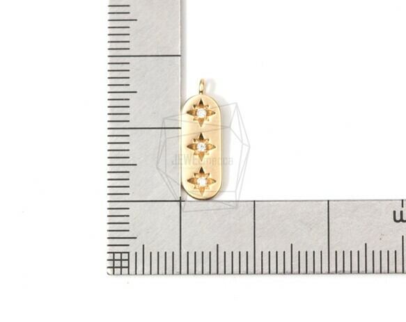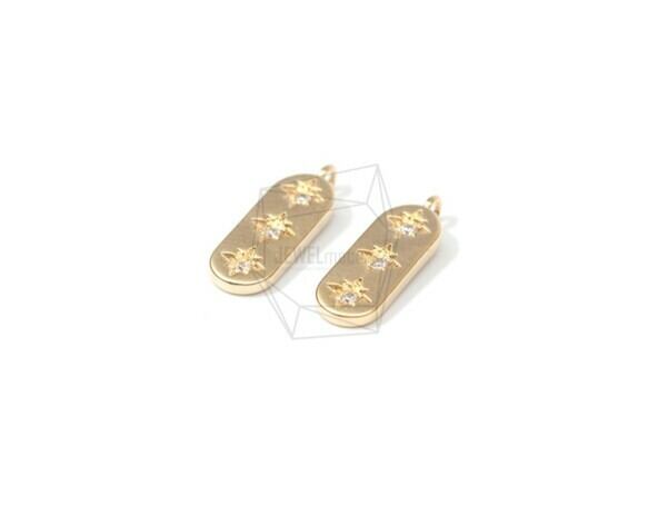PDT-1404-MG/2PCS/Gold Bar Pendant/5mm X 15mm/Matte Gold Plated Over Brass , Cubic Zirconia