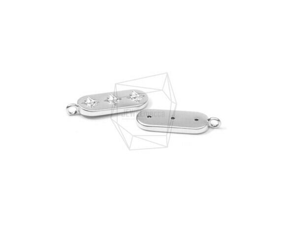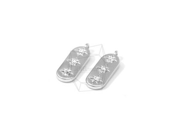 PDT-1404-MR/2PCS/Gold Bar Pendant/5mm X 15mm/Matte Rhodium Plated Over Brass , Cubic Zirconia