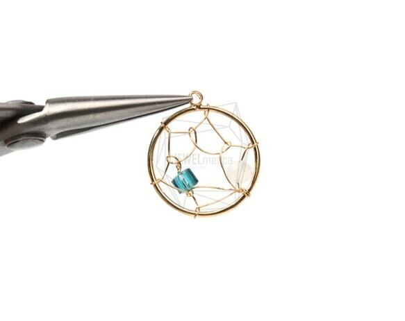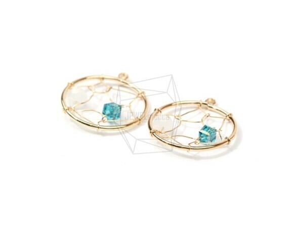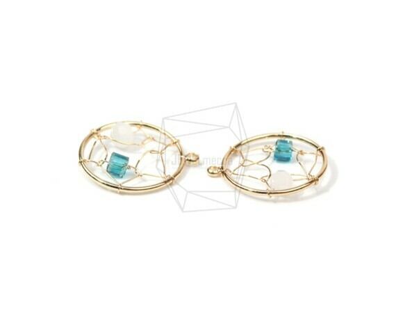 PDT-1405-MG/2PCS/Dream Capture Pendant/20mm X 20mm/Matte Gold Plated Over Brass , Glass