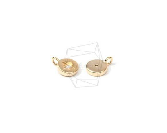 PDT-1406-MG/2PCS/small round pendant/5mm X 10mm/Matte Gold Plated Over Brass , Cubic Zirconia