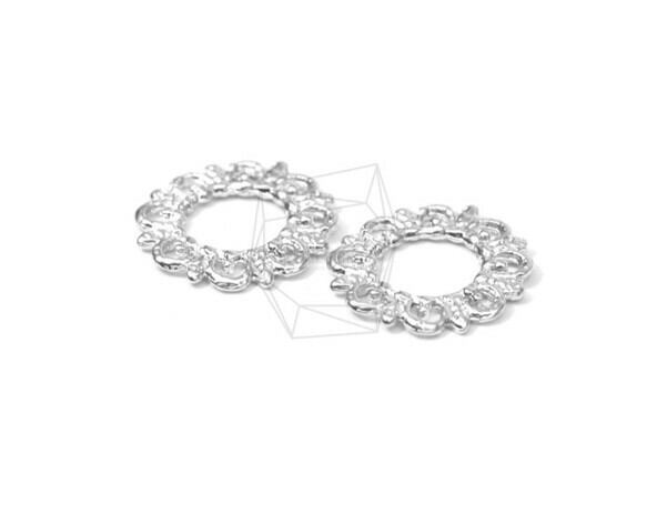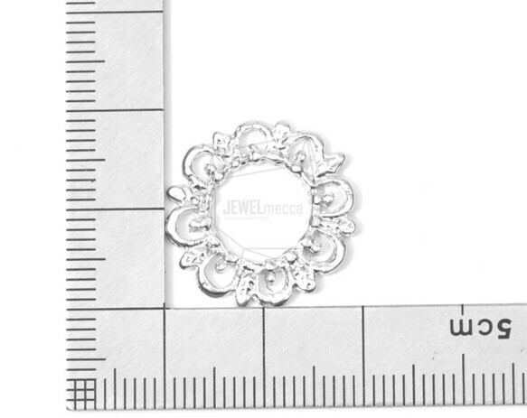 PDT-1412-MR/4PCS/Lacy Oriental Round Pendant/20mm X 20mm/Matte Rhodium Plated Over Brass