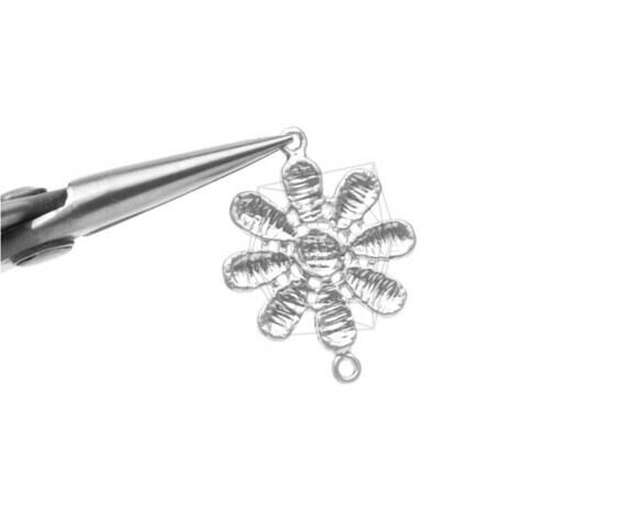PDT-1413-MR/4PCS/Lacy Oriental Flower Pendant/20mm X 25mm/Matte Rhodium Plated Over Brass