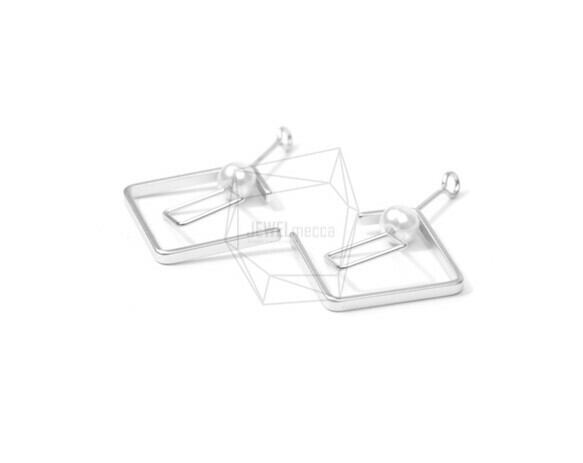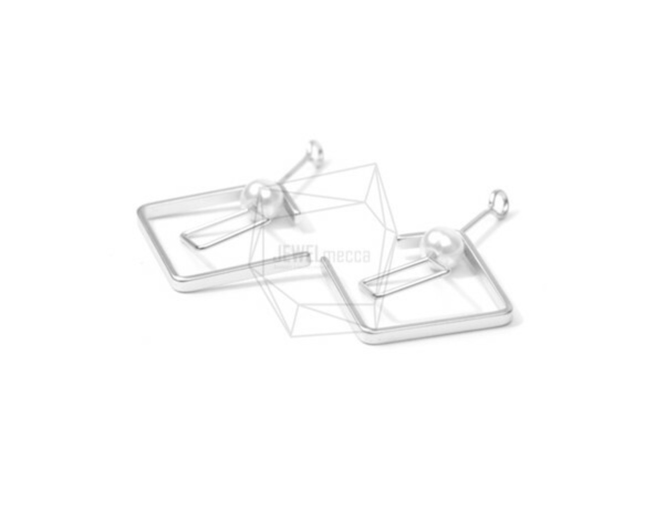 ERG-663-MR/2PCS/Rhombus Earring Charm/30mm X 45mm/Matte Rhodium Plated Over Brass , Imitation Pearl