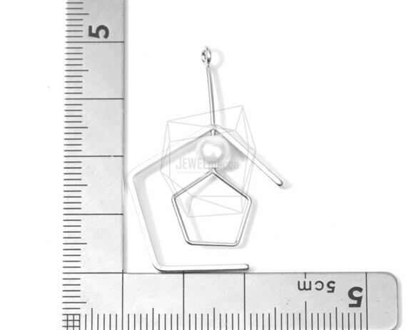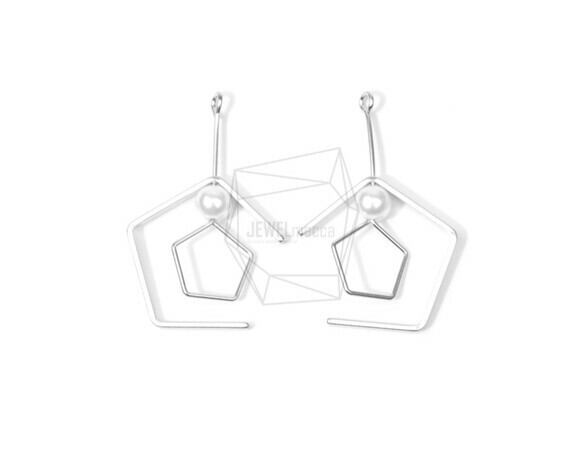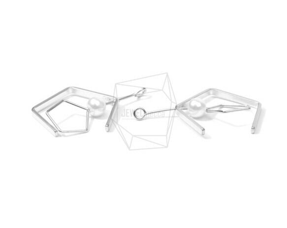 ERG-664-MR/2PCS/Pentagon Earring Charm/25mm X 40mm/Matte rhodium Plated Over Brass , Imitatation Pearl