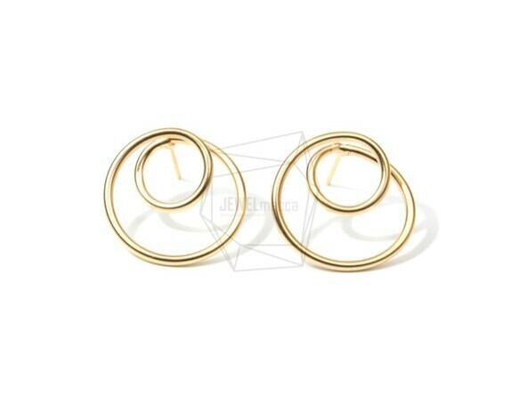ERG-667-MG/2PCS/Double Circles Post Earring/20mm X 20mm/Matte Gold Plated Over Brass