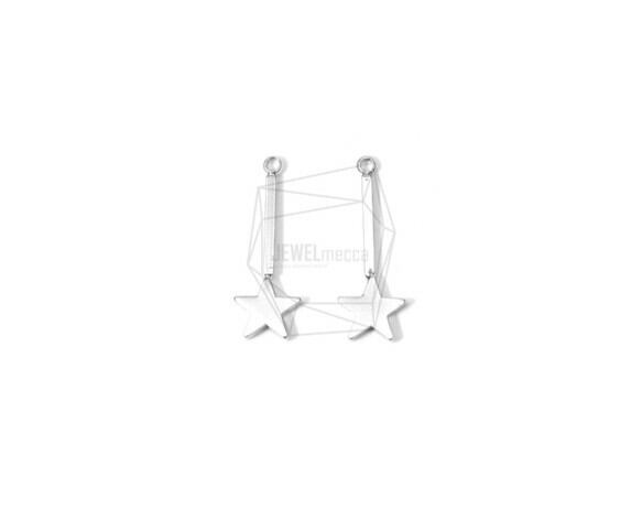 PDT-1432-MR/2PCS/Star Drop Pendant/5mm X 20mm/Matte Rhodium Plated Over Brass