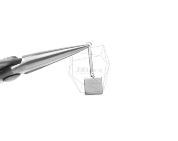 PDT-1434-MR/2PCS/Square Drop Pendant/5mm X 20mm/Matte Rhodium Plated Over Brass