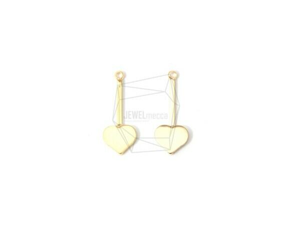 PDT-1435-MG/2PCS/Heart Drop Pendant/5mm X 20mm/Matte Gold Plated Over Brass