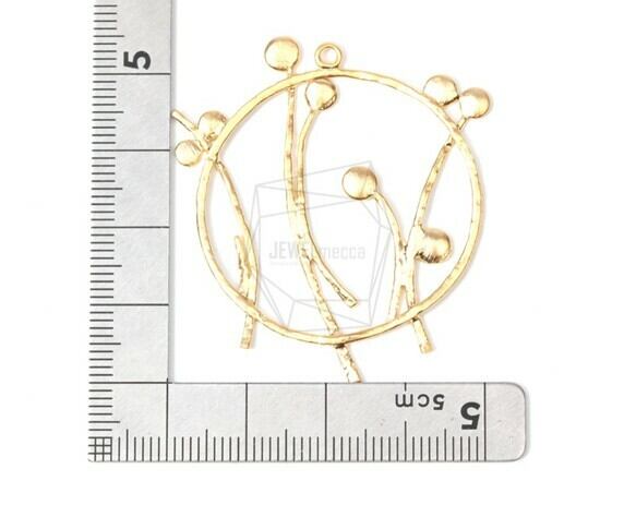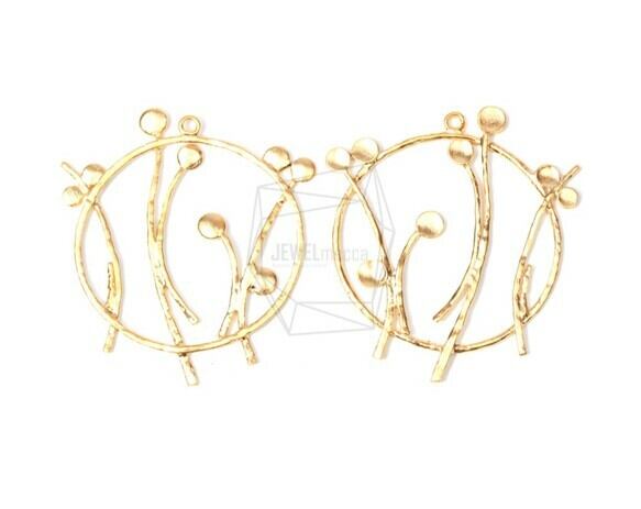 PDT-1438-MG/2PCS/Tree Branches With Round Circle Frame Pendant/40mm X 45mm/Matte Gold Plated Over Brass