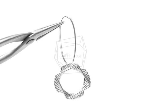 ERG-678-MR/2PCS/Multiple Squares Dangle Earring Charm/60mm X 25mm/Matte Rhodium Plated Over Brass