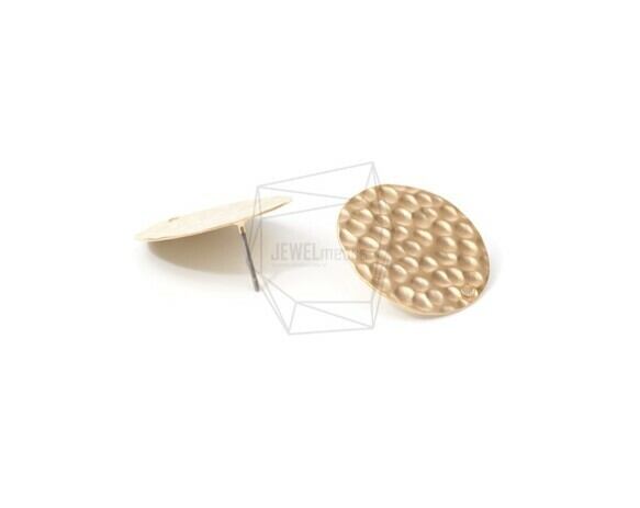 ERG-671-MG/2PCS/Round Disk Hammered Texture Post Earring/25mm X 25mm/Matte Gold Plated Over Brass, Titanium Post