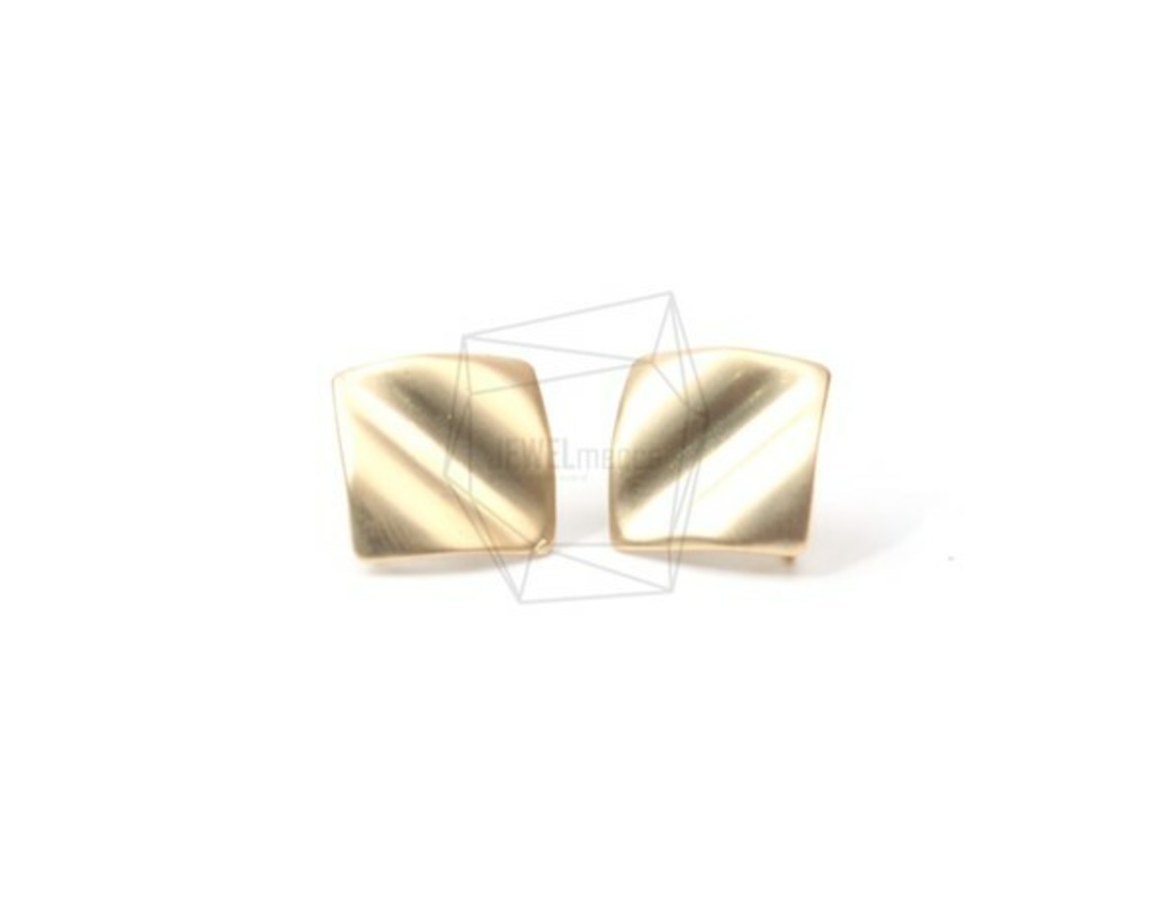 ERG-674-MG/2PCS/Wavy Rhombus Post Earring/15mm X 15mm/Matte Gold Plated Over Brass, Titanium Post
