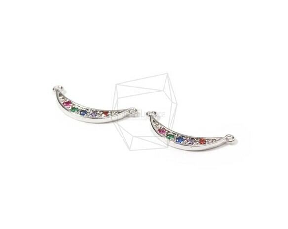 CNT-179-R/2PCS/Crescent Moon Pendant/20mm X 10mm/Rhodium Plated Over Brass,Cubic Zirconia