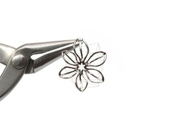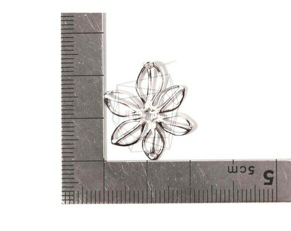 ERG-687-R/2PCS/Wire Flower Post Earring/20mm X 25mm/Rhodium Plated Over Brass, 925 Silver Post