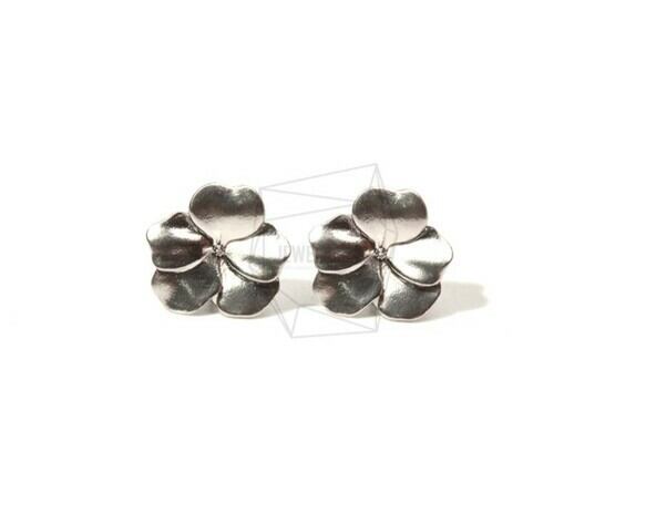 ERG-690-MR/2PCS/Pansy Flower Post Earring/10mm X 10mm/Matte Rhodium Plated Over Brass, 925 Silver Post