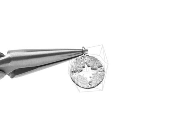 PDT-1440-R/2PCS/Round Compass Pendant/10mm X 15mm/Rhodium Plated Over Brass