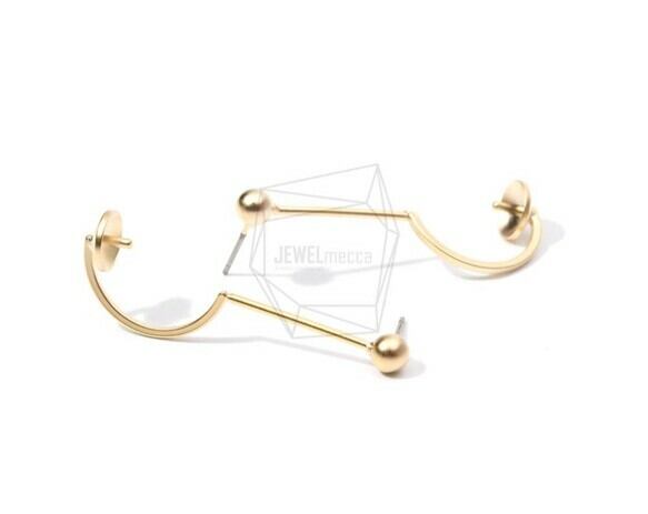ERG-694-MG/2PCS/Inverse Question Mark Post Earring/15mm X 55mm/Matte Gold Plated Over Brass, Titanium Post