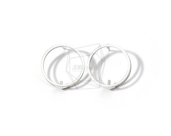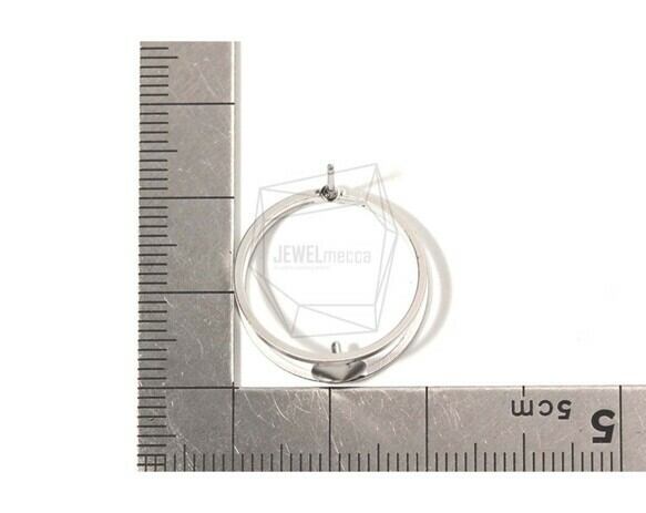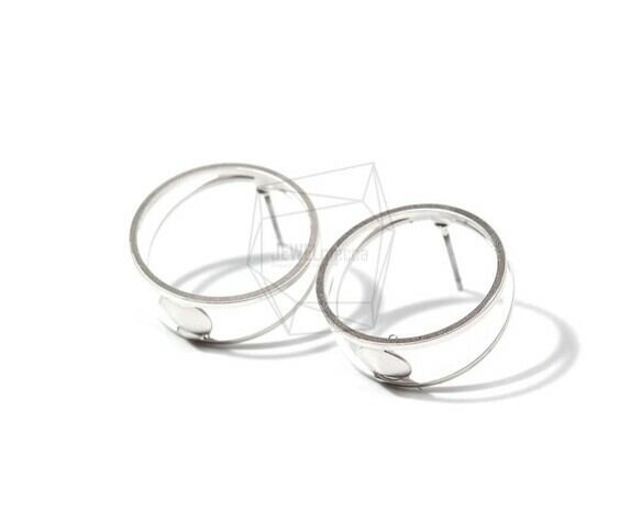 ERG-695-MR/2PCS/Two Layered Circle Post Earring/20mm X 20mm/Matte Rhodium Plated Over Brass, Titanium Post