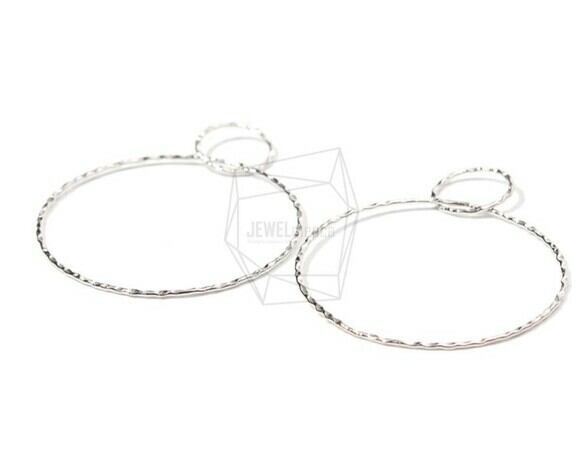 PDT-1490-R/2PCS/Circle Link Pendant/50mm X 60mm/Rhodium Plated Over Brass