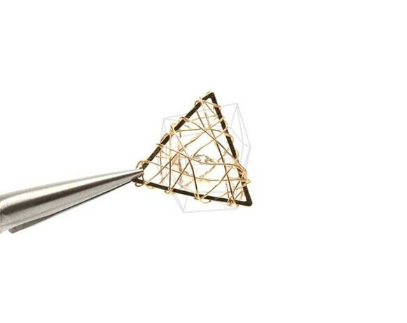 PDT-1452-G/2PCS/Wired Triangle Pendant/20mm X 20mm/Gold Plated Over Brass, Glass