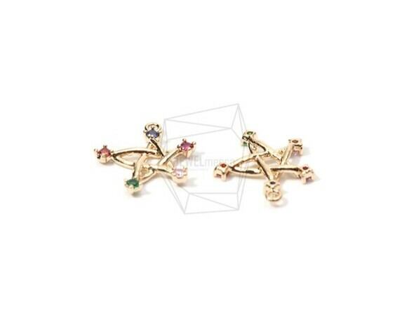 PDT-1459-G/2PCS/Cubic Star Pendant/15mm X 15mm/Gold Plated Over Brass, Cubic Zirconia