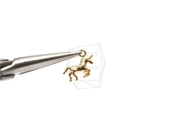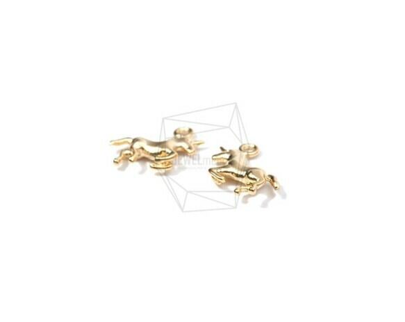 PDT-1464-MG/2PCS/Tiny Unicorn Pendant/10mm X 10mm/Matte Gold Plated Over Brass