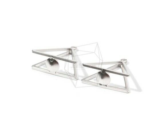 PDT-1469-MR/2PCS/Two Layered Triangle Pendant/20mm X 20mm/Matte Rhodium Plated Over Brass