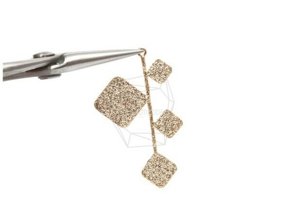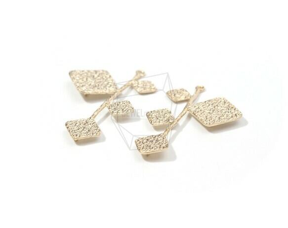 PDT-1487-MG/2PCS/Square Leaf Tree Branch Pendant/22mm x 40mm/Mate Gold Plated Over Brass
