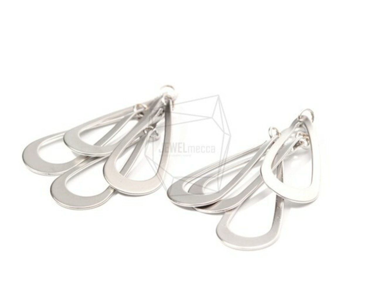 ERG-697-MR/2PCS/Multiple Drop Earring Charm/30mm X 60mm/Matte Rhodium Plated Over Brass