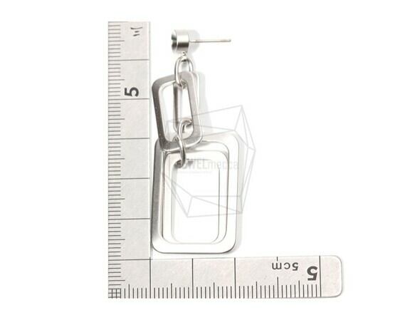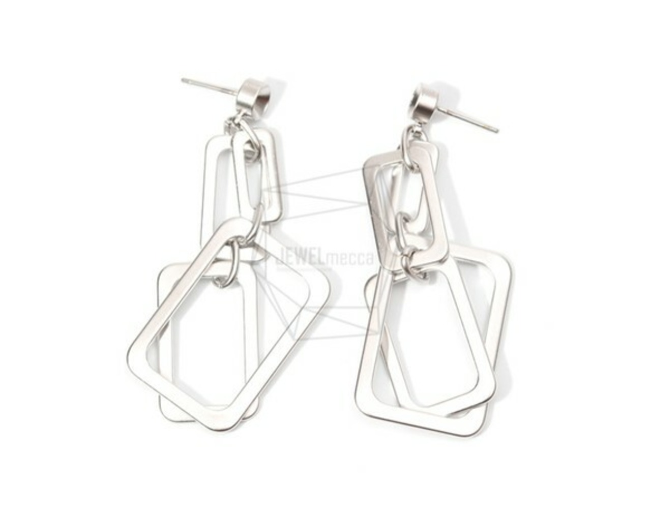 ERG-698-MR/2PCS/Rectangle Outline Dangle Post Earring /20mm X 55mm/Matte Rhodium Plated Over Brass, Titanium Post