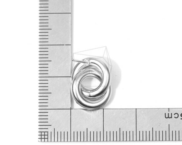 ERG-656-MR/2PCS/Tiny Two Linked Rings Post Earring/10mm X 15mm/Matte Rhodium Plated Over Brass