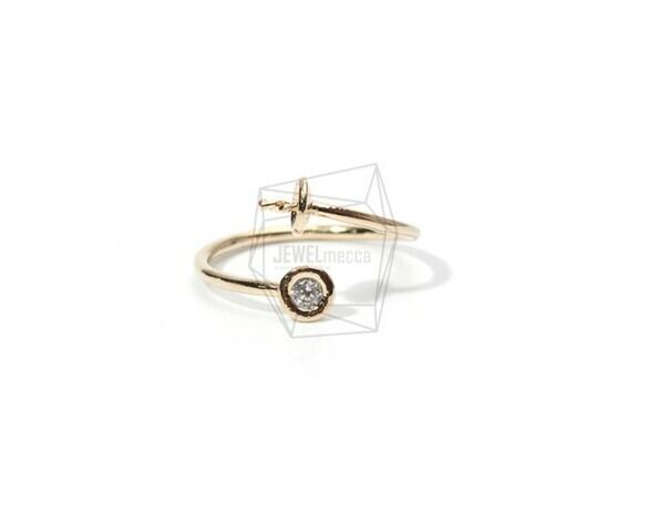 RNG-013-G/1PCS/Cubic Zirconium setting Ring Base/Adjustable Ring/Gold Plated Over Brass
