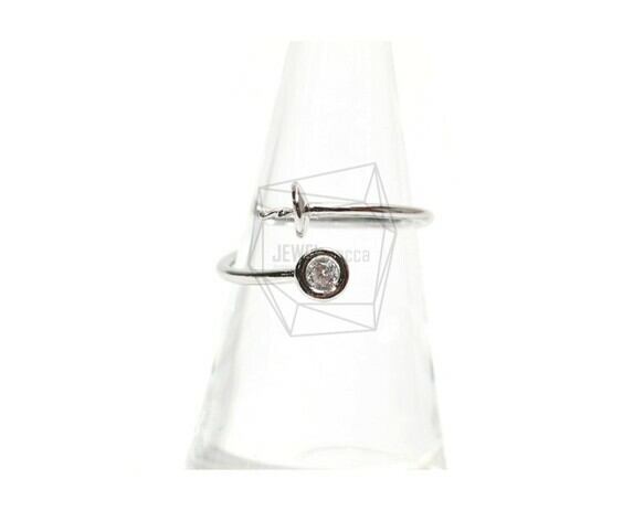 RNG-013-R/1PCS/Cubic Zirconium setting Ring Base/Adjustable Ring/Rhodium Plated Over Brass