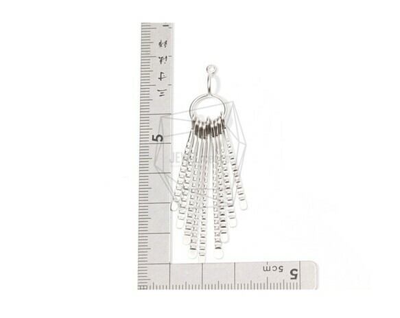 ERG-701-MR/2PCS/Rhodium Tassel Earring Charm/30mm X 70mm/Matte Rhodium Plated Over Brass
